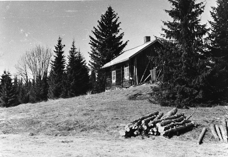 Granli, Vestre Toten – Ponsopp eller Korterudeie var husmannsplass under Korterud, og antakelig ryddet midt på 1800-tallet. Garden Korterud hadde tidligere mye utslåtter her, både sør for plassen og på flatene ned mot Korta. I 1912 ble plassen utskilt fra Korterud og skiftet navn til Granli. Bildet er tatt i 1958. – Fotograf: Sigmund Kildal. Foto: Mjøsmuseet / R 78/055/08.