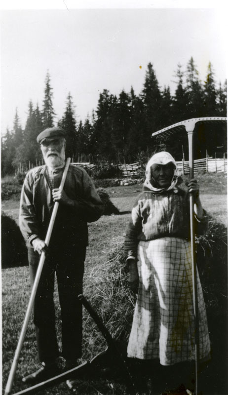 Digtimot under Berg gård, Gjøvik, ca. 1935. – På bildet ser vi August og Mathea Andreassen Digtimot. – Foto: Mjøsmuseet