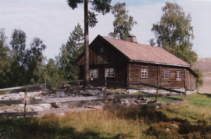 Hoffsbakken i Snertingdal – «Sjurstuen» fra husmannsplassen Hoffsbakken i Snertingdal. Blant annet ble Olaf Hoffsbakken født her. Bygningen er flyttet og satt opp igjen på Eiktunet hvor bildet er tatt. – Foto: Mjøsmuseet